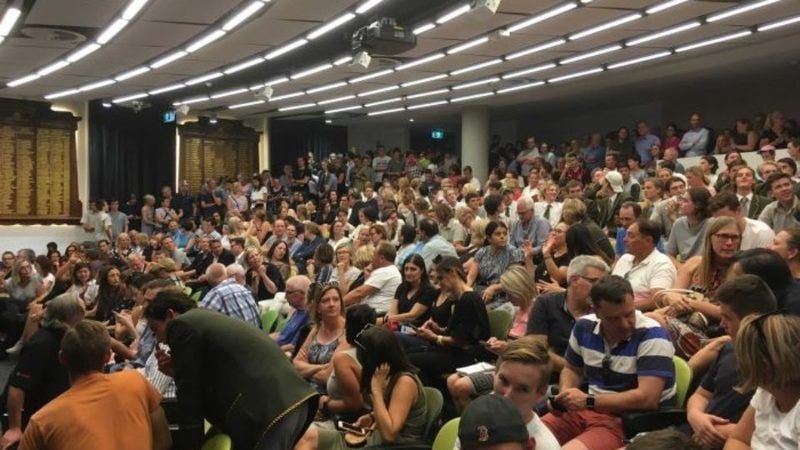 Above: An animated meeting of parents and the school community at Trinity Grammar in Melbourne